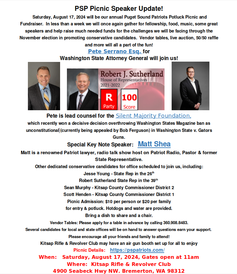 The Puget Sound Patriots (PSP) congratulate Coach Joe Kennedy of Bremerton High School on his Supreme Court victory 'for all of us'. He and his family suffered hardship for eight years while multiple appeals went through our courts until finally reaching the Supreme Court of the U.S. There we had enough educated justices (that actually know our Constitution) to overturn his persecution and firing for exercising his God given first amendment rights. This case should never have made it to the Supreme Court. The judges in our local systems either can't read and understand our Constitution, or just ignore it contrary to their oaths. Either way they disgrace us and should have the decency to step down and save taxpayers money when they are unable to (or refuse to) fulfill their duties. Also we thank and congratulate the Liberty First Institute lawyers for their tireless work and success on this case.